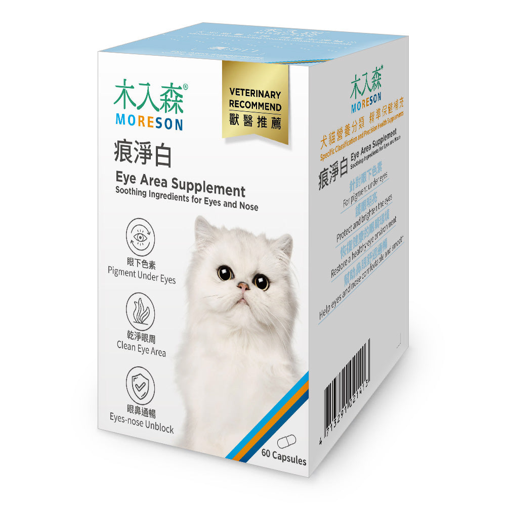 木入森 貓咪痕淨白,全面4大淨白營養,針對多重流淚原因,顧及眼睛、鼻子、免疫、菌源4重守護,具備強效抗氧化力,管理眼污累積,幫助呼吸順暢並針對敏感提供護理。成分據研究證實,可管理色素累積,達到淨白效果。