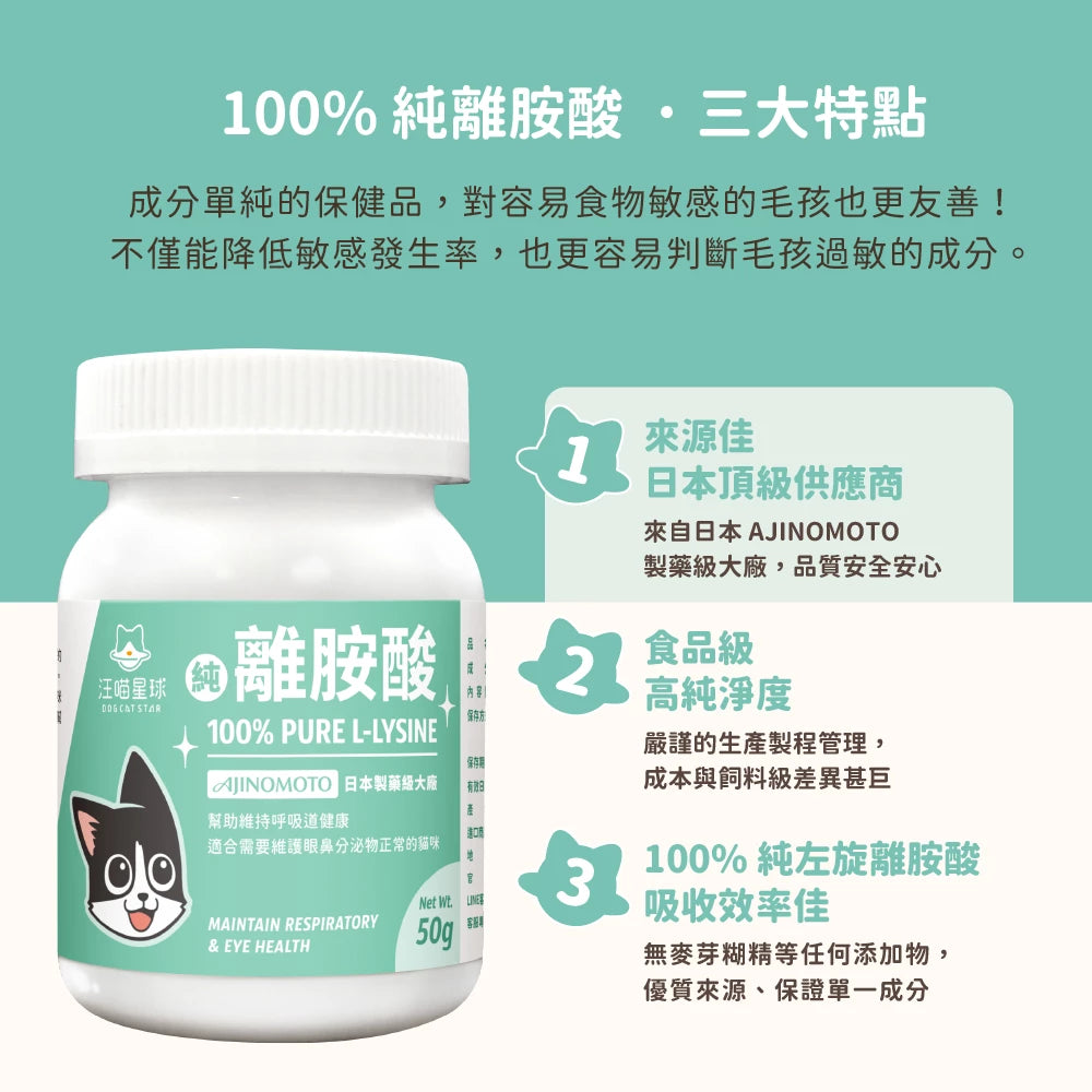 • 100%日本製藥大廠 Ajinomoto 純淨離胺酸